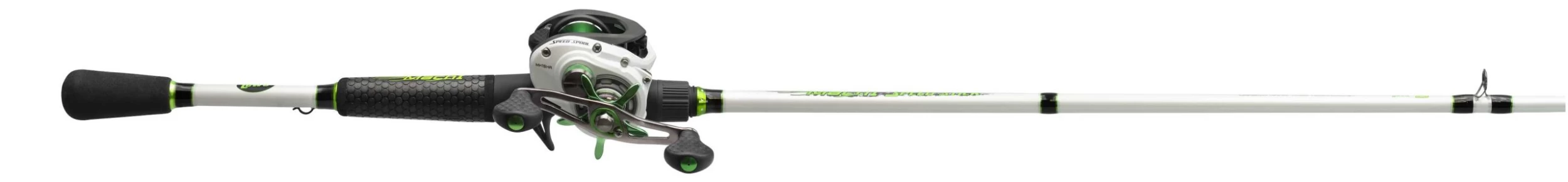 - The premium IM8 graphite blank has carbon nano tube construction with a white finish, dark gray and black, with stylish green accents.